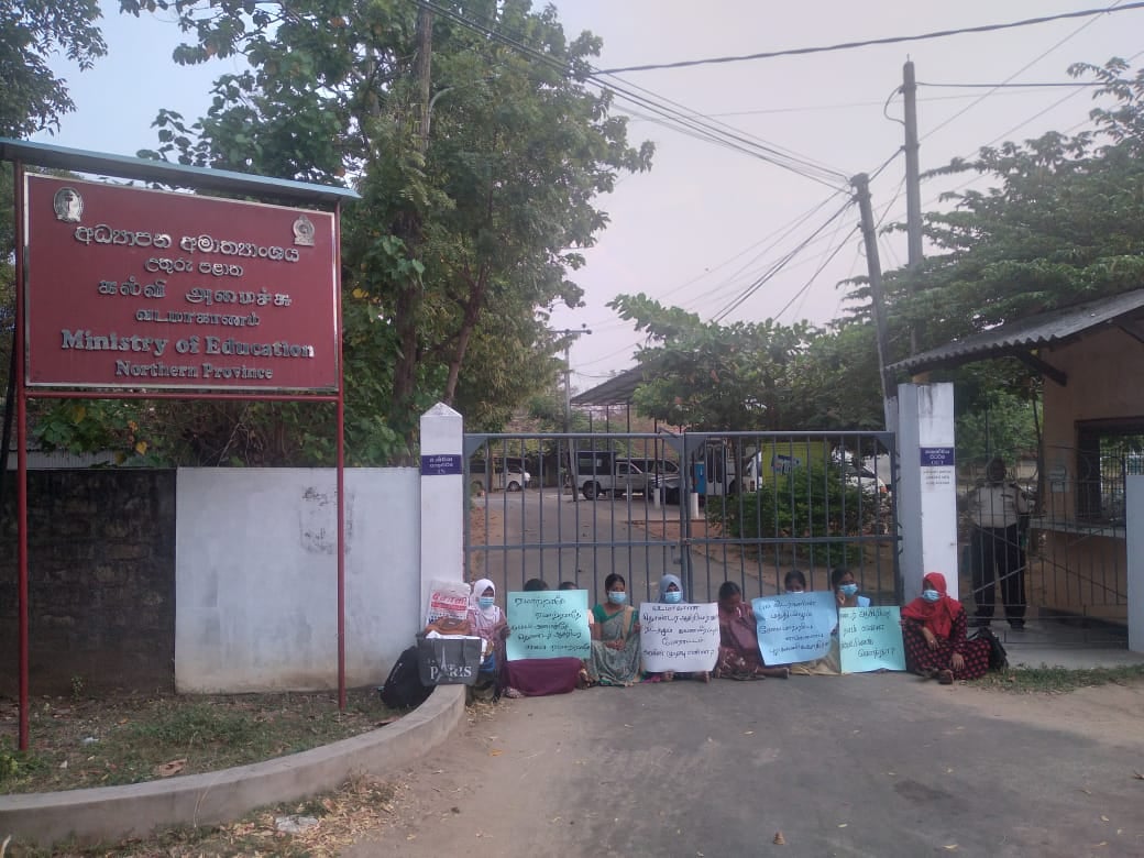 தமக்கான நிரந்தர நியமனத்தைகோரி வடமாகாண கல்வி அமைச்சு அலுவலகத்தை முற்றுகையிட்டு இன்றைய தினம் செவ்வாய்க்கிழமை தொண்டர் ஆசிரியர்கள் போராட்டத்தினை முன்னெடுத்துள்ளனர்.