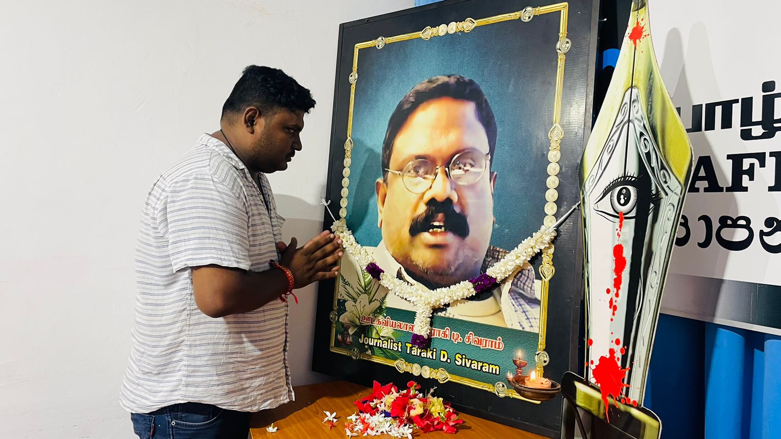 ஊடகவியலாளரான தராக்கி சிவராம் என்றழைக்கப்படும் தர்மரத்தினம் சிவராம் கடந்த 2005 ம் ஆண்டு ஏப்பிரல் மாதம் 28ம் திகதி கொழும்பு பம்பலப்பிட்டி பொலிஸ் நிலையத்திற்கு அருகில் வைத்து வெள்ளை வானில் வந்த இனம் தெரியாதவர்களால் கடத்தப்பட்ட பின்னர் நாடாளுமன்றத்துக்கு அருகில் படுகொலையான நிலையில் சடலமாக மீட்கப்பட்டார்.
